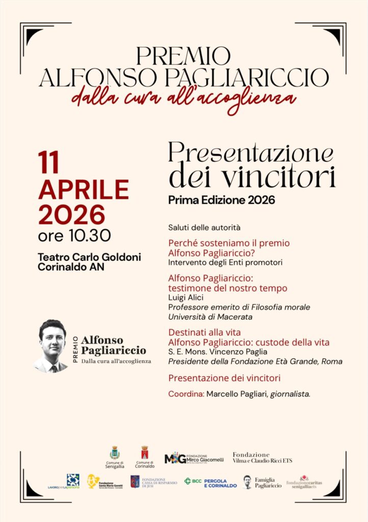 La Fondazione Santa Maria Goretti-Servizi alla Persona di Corinaldo invita la cittadinanza a partecipare alla presentazione dei vincitori del “ Premio Alfonso Pagliariccio-Dalla cura all’accoglienza”.