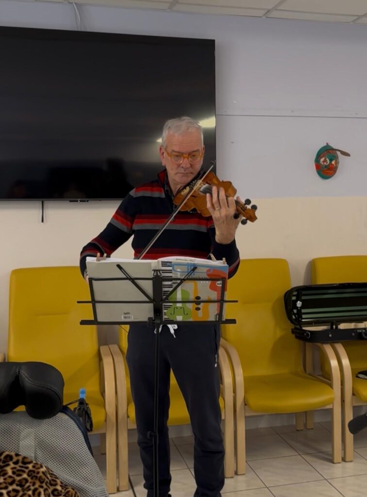 La mattinata è stata resa ancora più emozionante dalla musica del nostro volontario Fausto, che con il suo violino ha regalato momenti di grande emozione a tutti i presenti. Per questo lo ringraziamo di cuore.