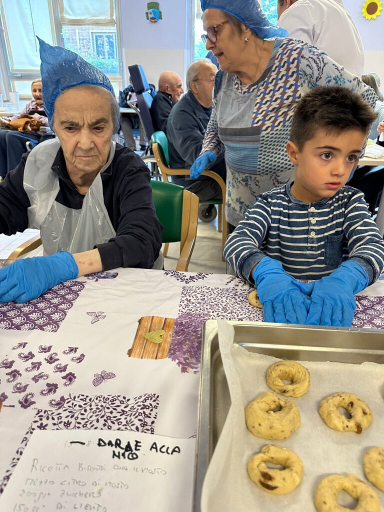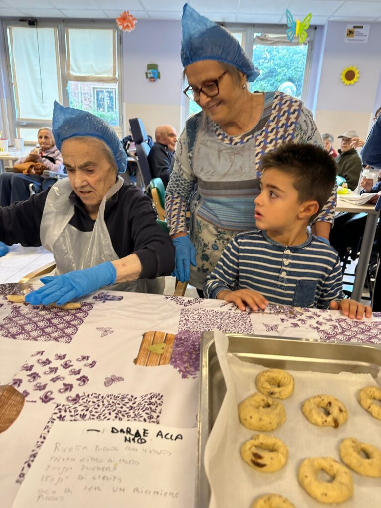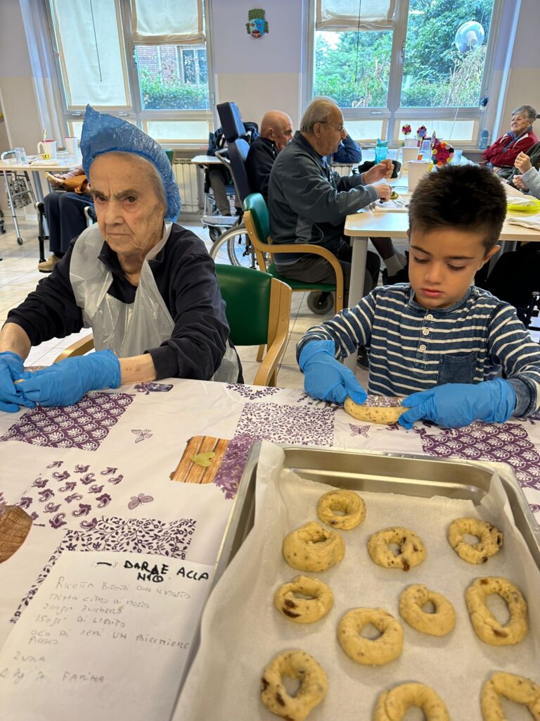 Un pomeriggio profumato di ricordi e dolcezza nella nostra casa di riposo: in occasione della Festa dei Nonni i nostri ospiti, insieme ai loro nipoti, hanno impastato le tradizionali ciambelle di mosto, e poi cotte e gustate tutti insieme tra sorrisi, racconti e tanta emozione.